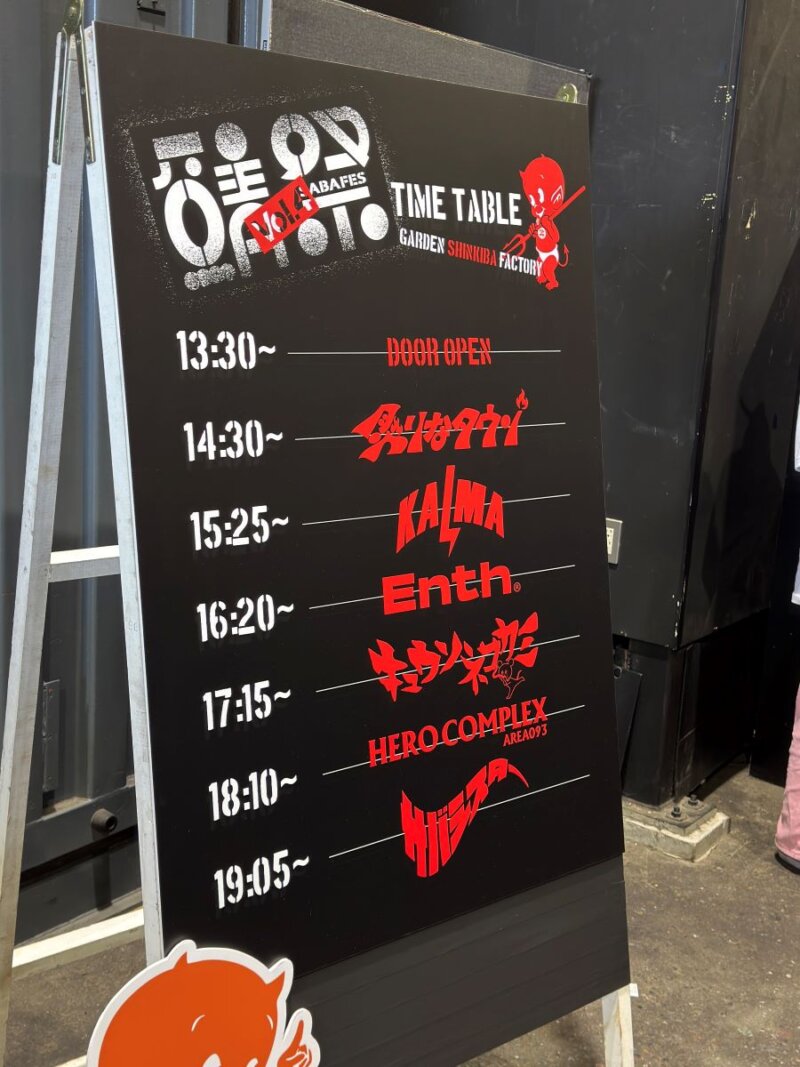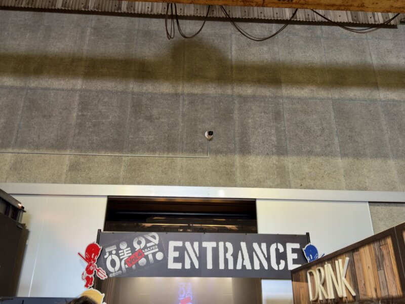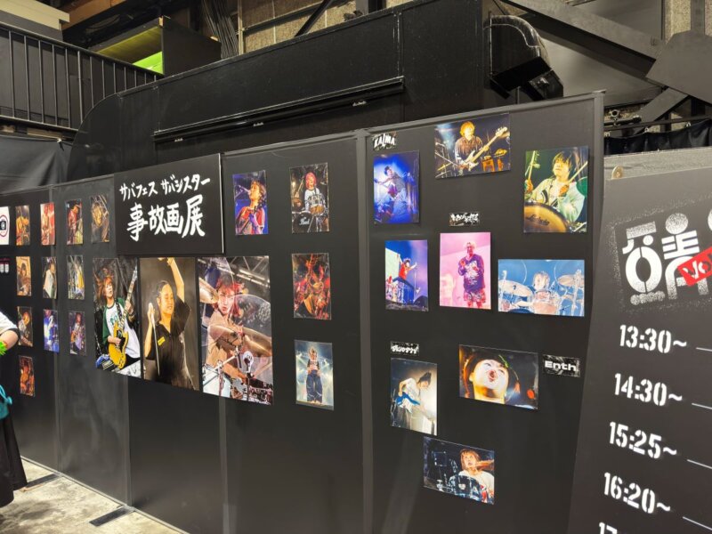朝からジムで筋トレとサウナをして会場に向かいます。チケットがなかなか表示されず、案の定ぴあのトラブルでしたが、待機列でようやくつながりました。会場は入口からキッチンカーや物販、ドリンク、トイレ、事故画展なる面白い展示スペースがあり、かなり窮屈です。なかなか会場がなかったのでしょうか。ステージエリアは柱も手すりもあり、下手側にはダイバー通路確保の頼りなさげな柵があります。開演が近づくとセキュリティが配置につき、いよいよ開演です。それではライブの様子です。