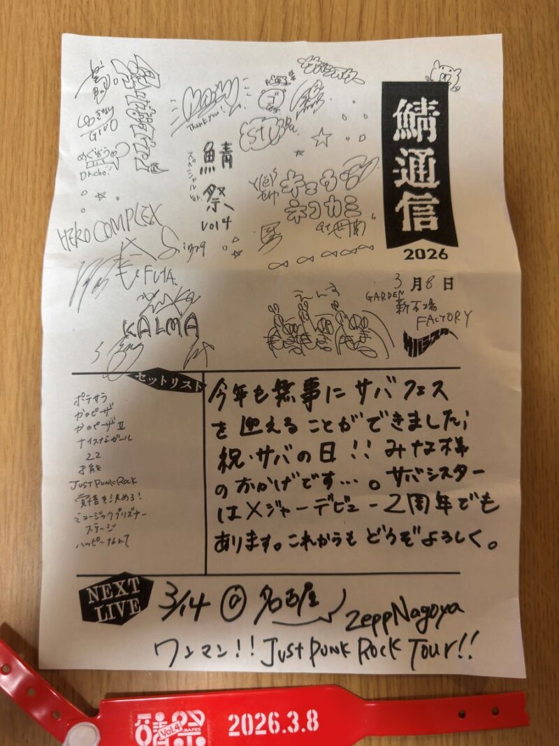 サバシスターらしい、楽しくてあっという間のフェスでした。また来年も楽しみです。呼ぶべきバンドが多すぎて1日では足りないのではないでしょうか。どのような対バンが見られるのか、今から楽しみです。みたらしゴローでした。