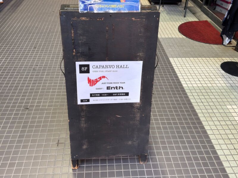 地上エントランスにはテレビクルーもいました。8階まで階段で上がる苦行を経て、新グッズのしげちゃんをゲットし、前回忘れてしまったサバシスターカードにスタンプとミニステッカーをいただきます。ドリンクはなんとプレモルを瓶のまま提供でした。キッズの姿もちらほら見かけましたが、モッシュやダイブ禁止の張り紙はマジでしょうか。下手壁際に入り、どんどん前へ促されて5列目くらいまで上がって陣取ります。BGMはサバシスターや対バン相手の曲が流れていました。それではライブの様子です。