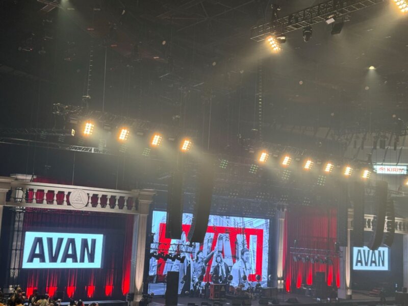 19時ちょうどに暗転すると、中央のモニターにタイトルロゴ「AVAN」が映し出されます。次いで楽屋からの通路が映され、リアルタイムでしょうか、メンバーが楽屋を出てステージへ向かう様子が流れます。