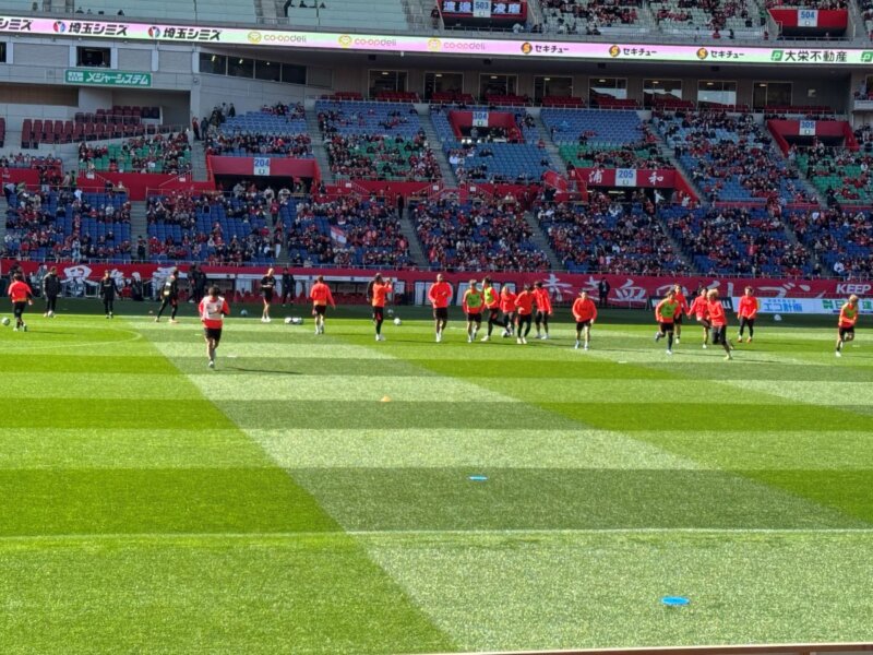 こんにちは、みたらしゴローです。今日は久々に埼スタ、浦和レッズです。最近本気でダイエット中ですので、春の日差しと強めの風を浴びながら歩いて向かいました。キックオフ90分前くらいに到着し、来場者プレゼントの特製ブランケットなど色々いただき、場外や場内を散策して自席に向かいます。