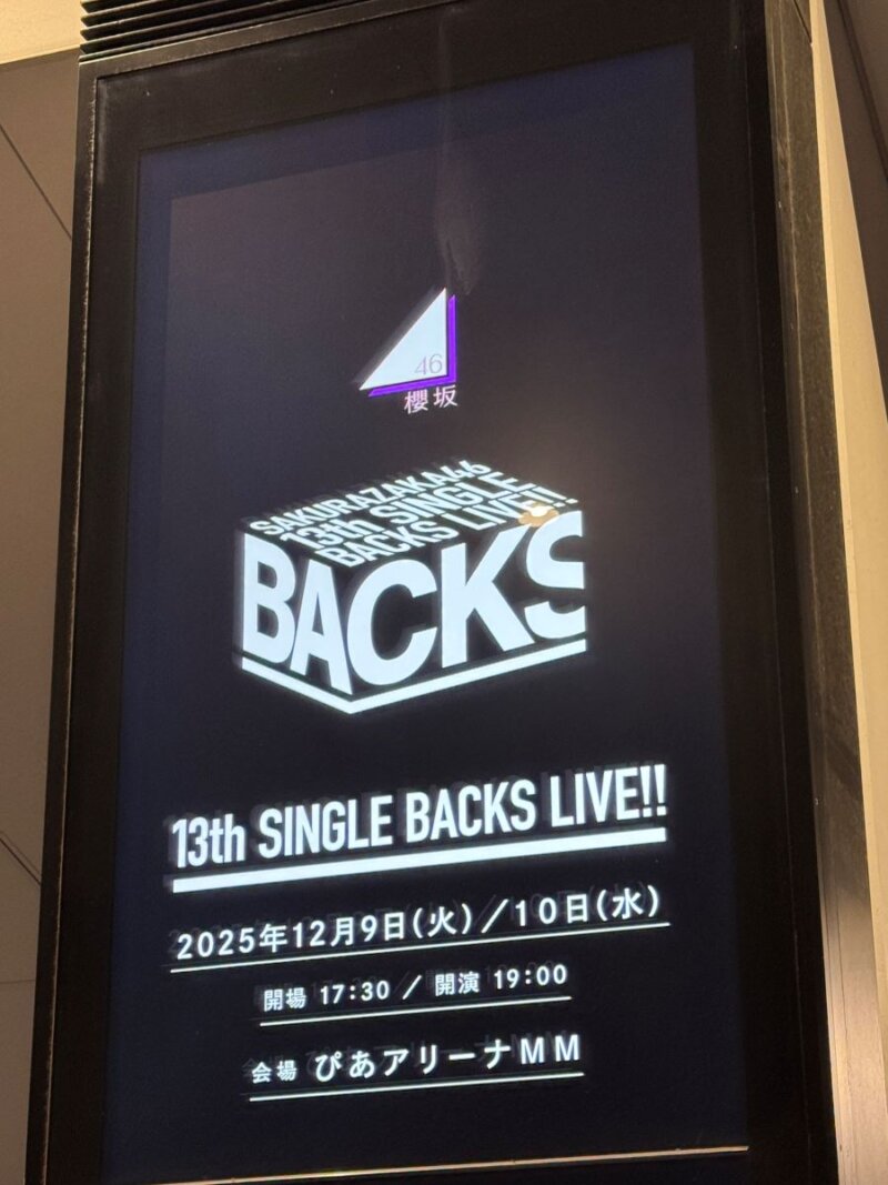 座長・谷口愛季と、卒業を控えた井上梨名の影ナレーションから始まった今回の「13th Single BACKS LIVE!!」は、ふんわりとした雰囲気とは裏腹に、ダンスを中心とした力強いパフォーマンスが印象的でした。過去のBACKS LIVEを象徴する盛り上がり曲も織り交ぜたセットリストで構成され、歴史と挑戦の両方を感じさせるステージでした。終盤には思わぬハプニングもありましたが、最後までしっかりと完走し、櫻坂46らしさが詰まった一夜となりました。次回からは4期生も加わると思いますが、ますます期待が膨らみます。みたらしゴローでした!