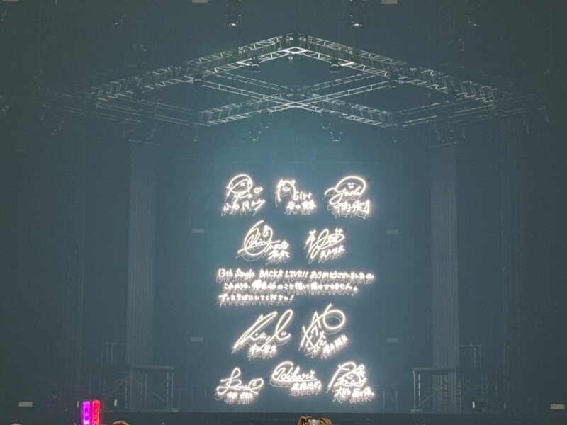 メインステージに整列しての最後の挨拶では、谷口愛李が「ほんとうに楽しかった」と語り、井上梨名は「みんなと目が合って、BACKS LIVEは何度もやってきたけど、嬉しかったり悔しかったり、自分の知らない自分を知った。ファンの皆さんとも絆が深まって、毎回最強が更新されて、ガチで最強。今日で私は最後だけど、最高でした!」と語り、鳴り止まない拍手に「ありがとう!」と照れ隠しのように叫びました。武元唯衣は「ダンストラックでやりたかった挑戦をやらせてもらえて、始まる直前にちょっと泣いた」と明かし、谷口愛李を中心にメンバーがリハーサルから自立していたことへの感謝を述べました。
