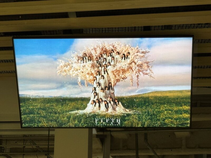 ラストでしょうか。スクリーンには5年間の軌跡が森田ひかるフィーチャー版で、荘厳なBGMの中流されます。中央のスクリーンに「LAST SONG」と映し出されると、「Nobody’s fault」へ。オケ伴奏はオーケストラアレンジ版で披露され、最後は全員整列して後ろを向いたまま退場。同時に競技場外周屋根から花火が打ち上がり、本編を締めくくりました。