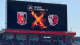 ハーフタイムでは来賓として大野元裕埼玉県知事が紹介されます。浦和のサブメンバーはピッチに出ず、緊急ミーティングでしょうか。