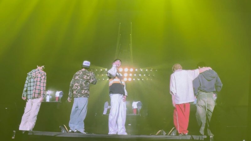WILD BLUEが呼び込まれ、重くもポップなSEでバラバラのカジュアル衣装をまとった5人が登場し「POP」「Bubbles」とパフォーマンスを披露しました。ランウェイを歩きながら自己紹介を行い、「メンズの声!」と声出しを促します。「さっき幸輝が歩いていましたね!ドラマの主題歌は僕たちの最新曲です。盛り上げてからいきます!」と煽り、撮影可能のアナウンスとともにセンターステージで新曲「You」を披露。片足ジャンプのステップで左右に移動する特徴的なダンスが印象的でした。メインステージへ戻りながら「BOX of DESTENY」「Astrist」と連続して披露しました。