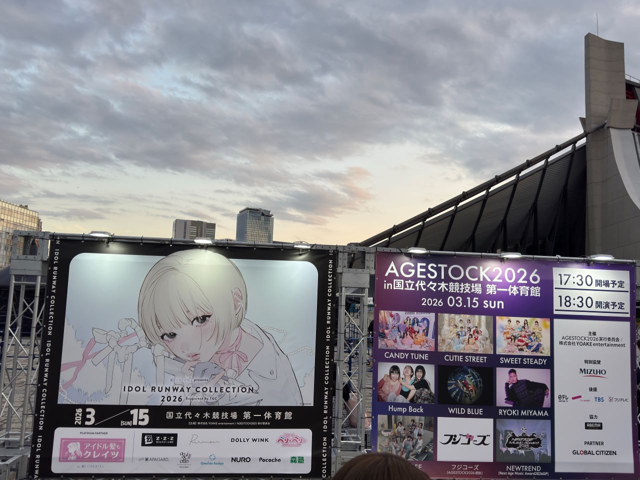 こんにちは、みたらしゴローです。今日は国立代々木競技場第一体育館でのAGESTOCK2026です。昨年は前日のIDOL RUNWAY COLLECTIONにも参加したイベントです。今年は好きなロックバンドとアイドルが出演です。昨年はほぼWACKの出演でしたね。たしかオープニングアクトがかなり早くからパフォーマンスしていたため、開場列に並ぶことにしました。ジムで一汗流し、昨日のプチ断食明けで少し腹ごなしをしてから会場に向かいました。食欲が不思議と減退するものですね。