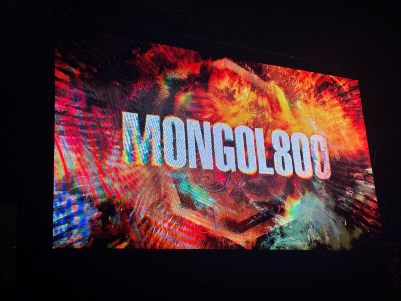 SEはカチャーシーソング「Enjoy Yourself (It’s Later Than You Think)」。この陽気な音楽に乗って黒ハット姿のキヨサクらが登場。「こんにちは!MONGOL800です、遊びましょう!」の声とともに、「あなたに」でライブがスタートしました。尽未来祭で集まったお前らと一緒に、少年の心に戻ろう!と「少年時代」へと続きます。