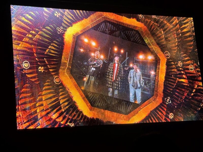 ボーカルのトーキョー・タナカは「MAN WITH A MISSIONです!楽しんでいきましょう!皆さん!まだまだいけますか!」とクラップと声援を煽り、「Take What U Want」ではユニークなリズムに体を揺らします。続く最新曲「Against the Kings and Gods」、そして「絆ノ奇跡」では序盤でやり直しがありつつも、和の要素を取り入れた新鮮な楽曲を、ジャン・ケン・ジョニーとトーキョー・タナカの歌声で力強く届けました。ここでも大量のダイバーがフロアを埋め尽くします。