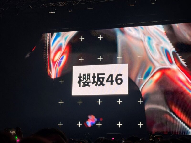 初日唯一の前方当選は櫻坂46で、中段のやや下手側でした。「摩擦係数」でサウンドチェックが行われ、それだけでフロアは大きく湧いていました。