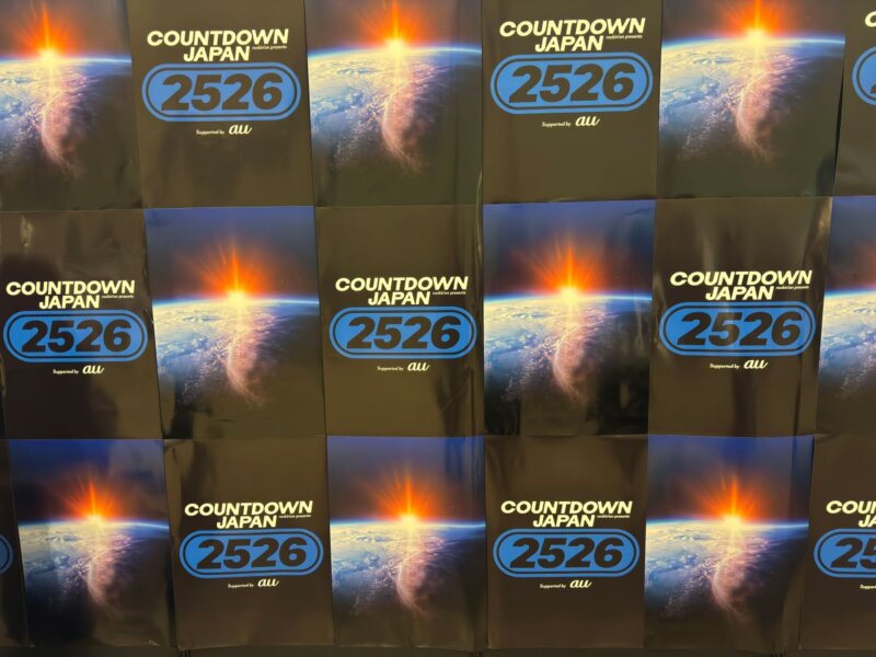 こやまたくやが「今年はどうですか!?」と振ると、ありぼぼは「ヘビーな年でしたね」。こやまたくやは「meは」と蛇の巳で返し、ありぼぼは「ニョロニョロとして、蛇足でしたか?」と畳みかけ、フロアから「オー!」と歓声が上がります。「一皮脱皮したような」とキレキレの掛け合いが続き、「来年は午年なのでグッズを出しました」とスクリーンにTシャツを映しますが、裏面には「2025」とミスプリント。失笑が起きる中、「普通にミスってるし、このまま出してますけど、COUNTDOWN JAPAN 25/26、僕らはCOUNTKEEP JAPAN 25/25」とロゴをスクリーンに表示しました。