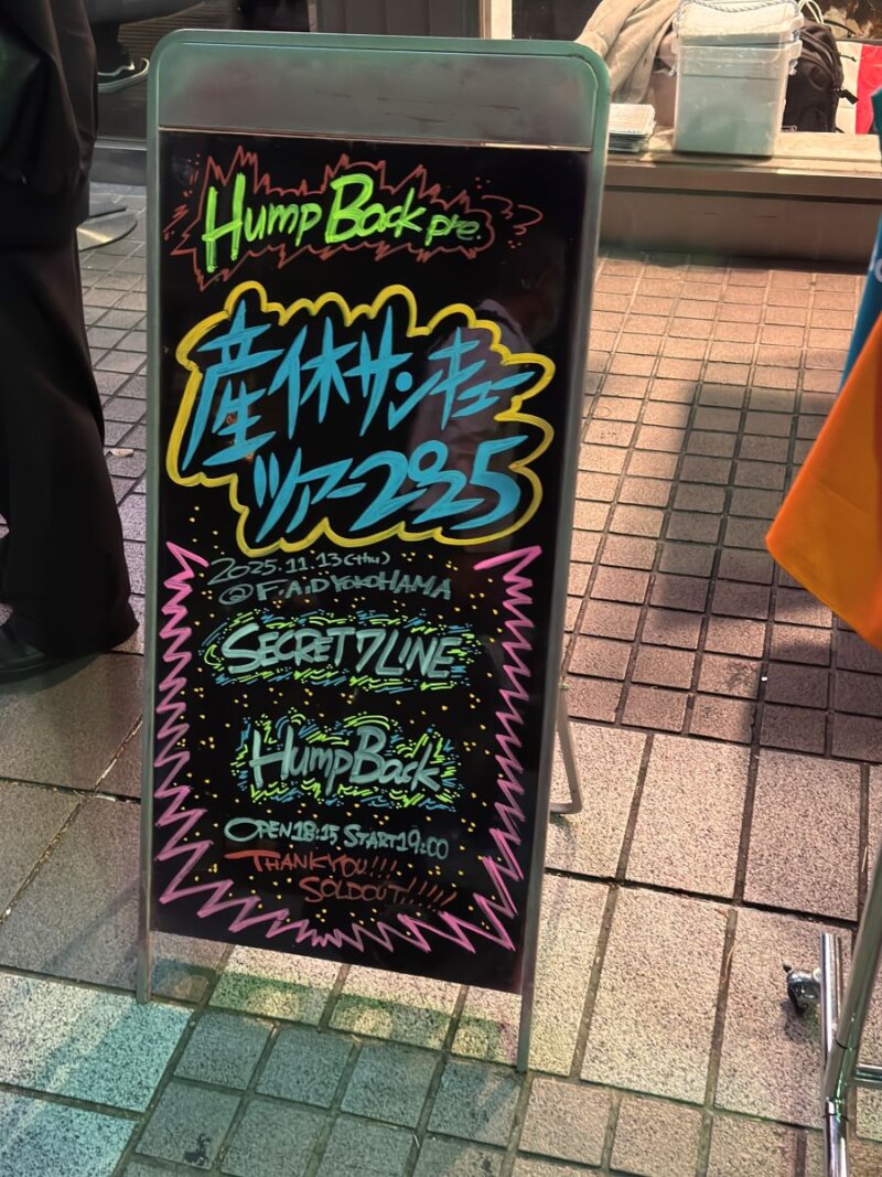 こんにちは、みたらしゴローです。今日は横浜で開催されたHump Backのツアーに行ってきました。チケットは公式リセールで入手しました。先週あたりから「石持ち」特有の脇腹の痛みが出て、朝一番で病院に行き投薬を受けました。次週に詳しい検査を受ける予定ですが、薬を飲んだだけで気のせいか快方に向かっているような錯覚を覚えます。午後に少しだけ仕事をこなし、横浜へ向かいました。水分を多く摂らなければならないので、開演までに万全に絞り出しておくつもりです。リセールと整理番号が別になっており、入場は後半になりましたが、上手側のかなり前まで行くことができました。たくさんジャンプして石を落としたいところです。それではライブの様子をお届けします。