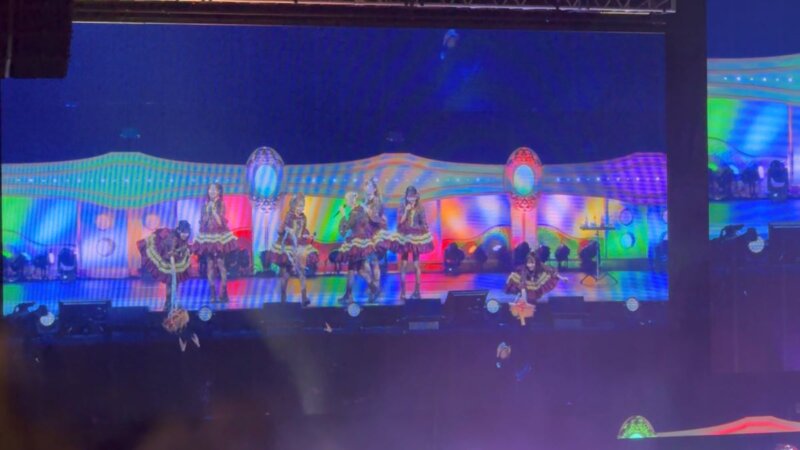 こんにちは、みたらしゴローです。昨日に引き続きKアリーナ横浜に参戦です。今日は昼間に会社商品の撮影があり、夕方はうまくいかなかった案件について取引先へ説明するなど慌ただしく過ごしてから横浜へ向かいました。本日の座席はロアースタンド下手側で、レベル7まで開放されている様子です。今日もサブタイトルが追加されており、「ふるっぱー’s SELECTION〜君と、好きが重なったとき〜」とのこと。隣のJKらしき来場者が待ち時間に勉強をしていて偉いなと思いながら開演を待ちます。注意事項のアナウンスが流れ、いよいよ開演です。どのようなライブになるのでしょうか。それではライブの様子です。