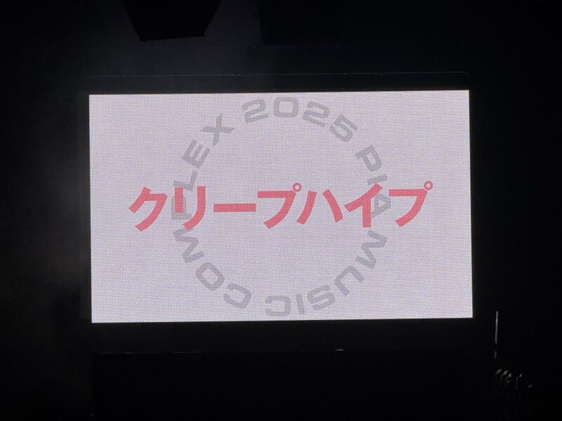 オーラスを飾るのはクリープハイプ。リハーサルでは「大丈夫」「ざらめき」を披露し、ボーカルギター尾崎世界観の特徴的な声が早くも響き渡ります。なぜかウィスパー調のデスボイスで「よろしくおねがいします」と呟き、一旦捌けました。